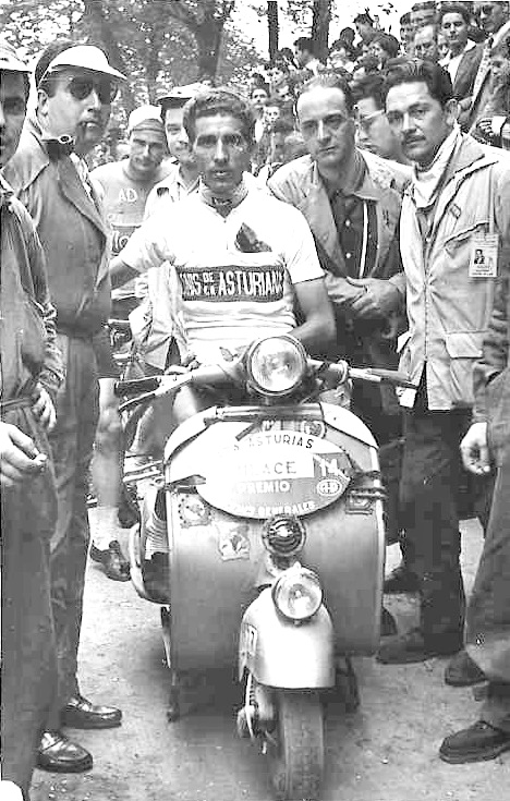 En agosto de 1959 Bahamontes, ya ganador del Tour, regresó a Asturias para disputar tres criteriums (Mieres, Gijón y Avilés) y recibir el homenaje de la afición asturiana. Yo creo que el homenaje fue mutuo porque Bahamontes se trajo para esos critériums a algunos de los mejores ciclistas del momento: Charly Gaul, Roger Riviere y Raphael Geminiani, además de los españoles Carmelo Morales, Luis Otaño, Antonio Suárez o San Emeterio. Un acontecimiento deportivo de lujo.