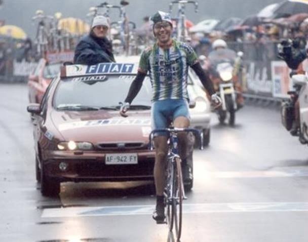 El pasado miércoles me dispuse a pasar una buena tarde viendo los Tres Valles Varesinos. Cual fue mi sorpresa cuando me di cuenta que la intensa lluvia terminó por hacer imposible la disputa de la clásica italiana y ésta fue suspendida. Una lástima, así que cambié de planes y entré en Facebook para consultar fotos e historias que suben los compañeros de mis grupos de ciclismo, muchas veces uno se encuentra con información muy interesante. Ante una preciosa fotografía de Chechu Rubiera se me iluminó una luz y recordé su primera victoria en el Giro, también en una infernal etapa con una copiosa lluvia que en aquella ocasión no logró la suspensión de la etapa.